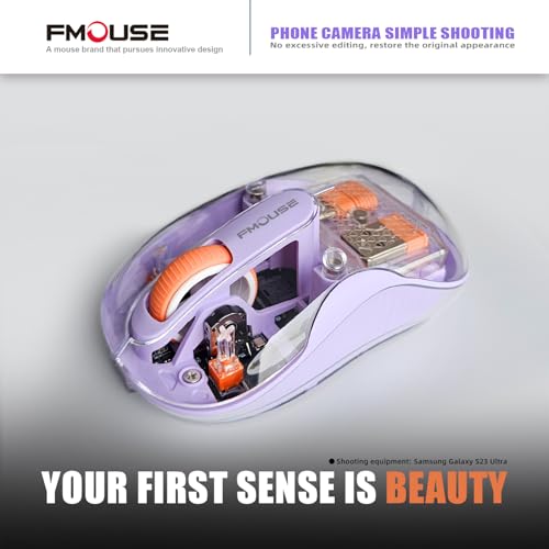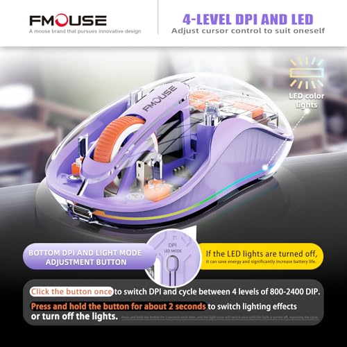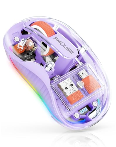 FMOUSE - ماوس لاسلكي جميل، ماوس بلوتوث شفاف مع مستقبل USB ونوع C لماك بوك/ايباد/لابتوب، ماوس محمول صامت قابل لاعادة الشحن للبنات والنساء مع ايدي صغيرة