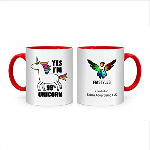 FMstyles - مج مطبوع بعبارة «Yes I'm 99% Unicorn» من اف ام ستايلز، احمر، FMS489، سيراميك
