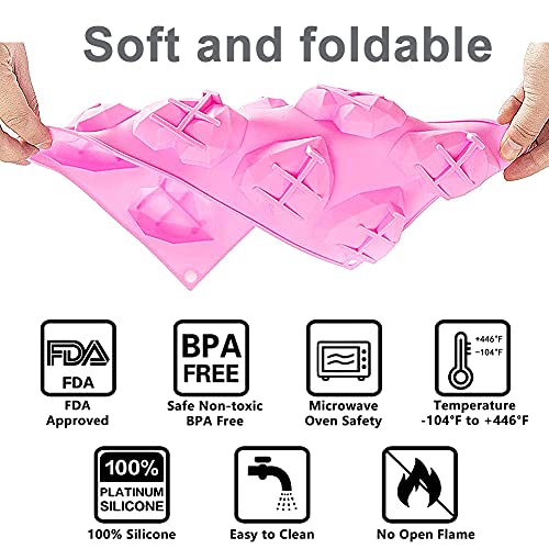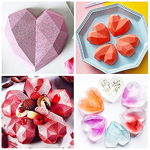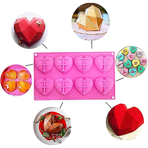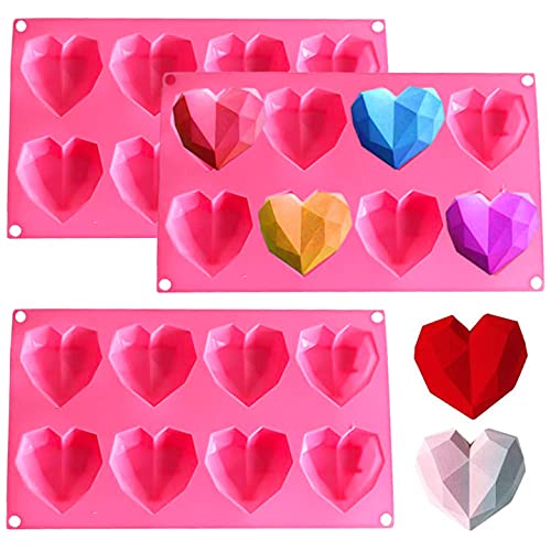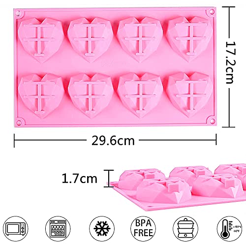 FNDE - قالب سيليكون من فاندي على شكل قلب ماسي ثلاثي الابعاد، ب8 تجاويف، قالب كيك على شكل قلب ( 3 قطع، لون بينك)