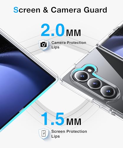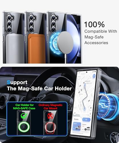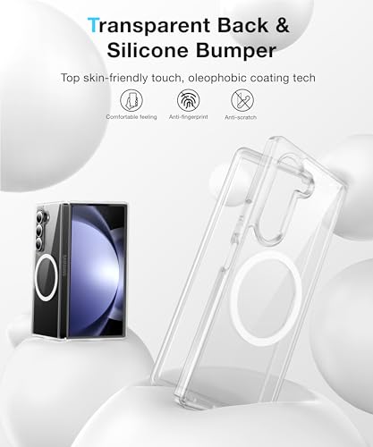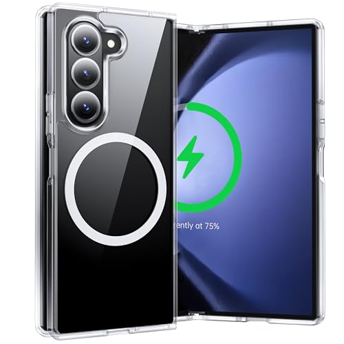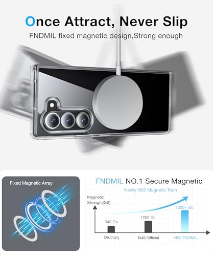 FNDMIL - جراب مغناطيسي رقم 1 لموبايل سامسونج جالاكسي Z فولد 5 مع ماج سيف [مضاد للاصفرار] [مقاس نحيف] [اختبار السقوط من الدرجة العسكرية] جراب شفاف من السيليكون الناعم لسامسونج فولد 5 من فندميل، شفاف