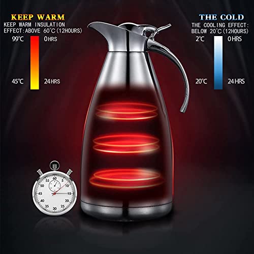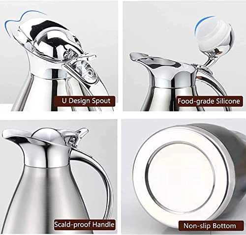 - تصميم لطيف: ستانلس ستيل مزدوج الجدران يجعل إبريق المشروبات الخاص بك متينًا. المقبض والغطاء العلوي مصنوعان من مادة الكروم المتينة، معزولة حراريًا مما يجعل من السهل حملها. تصميم الفوهة على شكل حرف U يجعل من السهل صب المشروبات وإخراجها دون تسريب.