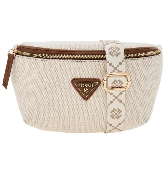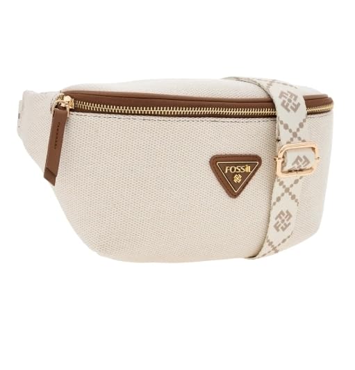 Generic - حقيبة فاني من القماش من فو-اس اس-ايل، بيج مع حزام مزخرف، قطع معدنية ذهبية اللون