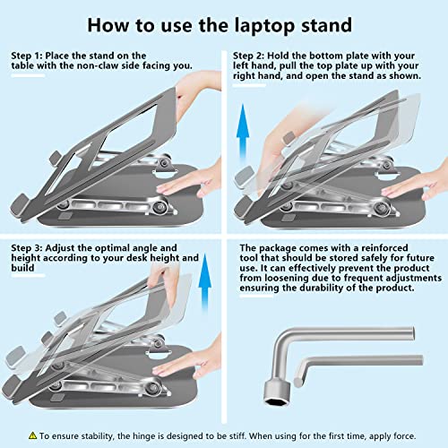 FOBELEC - حامل لاب توب بارتفاع وزاوية قابلة للتعديل، قابل للطي مضاد للانزلاق من خليط معدني من الألومنيوم سعة تحميل 9 كيلوجرام، متوافق مع ماك بوك اير/برو/ديل اكس بي اس/اتش بي/لينوفو 10-16 بوصة من فوبيليك، رمادي
