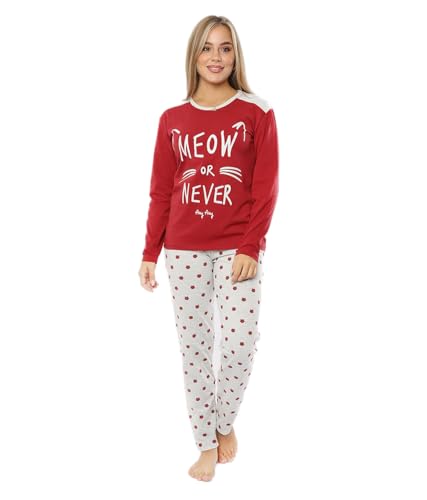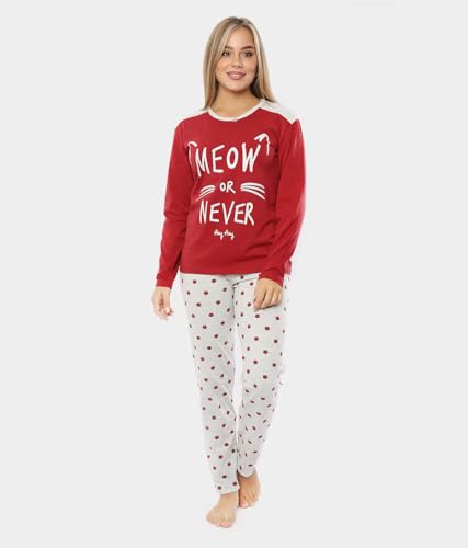 Focas - بيجامة قطن للنساء مزينة بعبارة "meow or ever" من فوكاس باي نيو - احمر غامق - pj30123