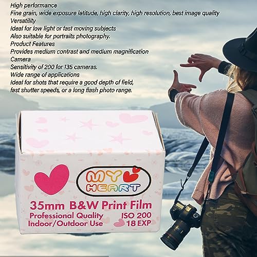 - متعدد الاستخدامات: فيلم طباعة الكاميرا بالأبيض والأسود مثالي للأهداف ذات الإضاءة المنخفضة أو السريعة. كما أنه مناسب لتصوير البورتريه.