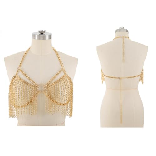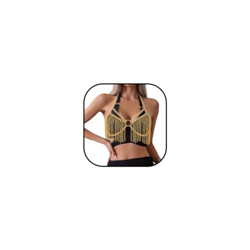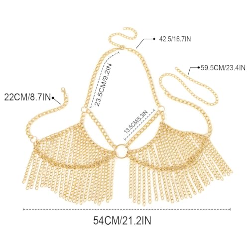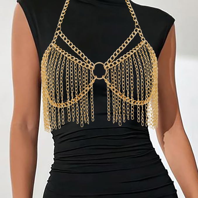 Foemmi - سلسلة جسم بوهو ذهبية بشراشيب من فومي، سلسلة حمالة صدر بيكيني متعددة الطبقات للحفلات والنوادي الليلية للنساء