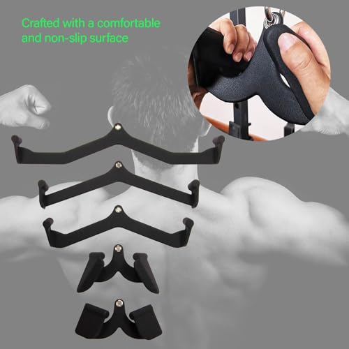 FOESINU - ملحقات سحب لاسفل لات من فويسينو 5 قطع كيبل البكرة على شكل حرف V لتدريب قوة الظهر مقبض ماج محايد LAT ملحق لقضيب السحب للمنزل وصالة الالعاب الرياضية وتمارين اللياقة البدنية أسود