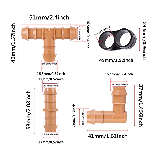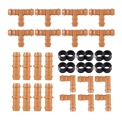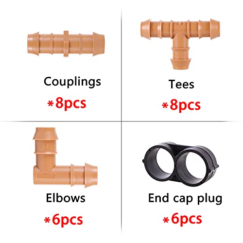 FOGWOWO - وصلات أنابيب FOGWOWO 1-2 بوصة (17 مم 600 معرف) ، 28 قطعة من أجزاء الري بالتنقيط ، بما في ذلك 8 قطع موصلات 3 طرق ، 8 موصلات ، 6 أكواع ، 6 سدادات نهائية لأنابيب الري 1-2 بوصة