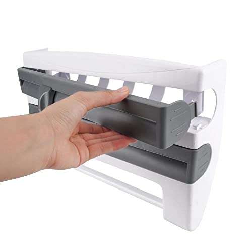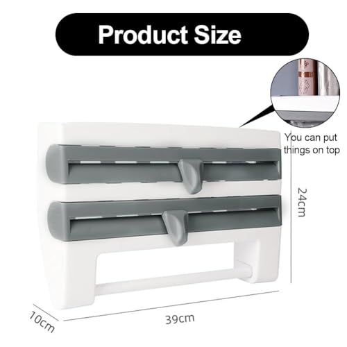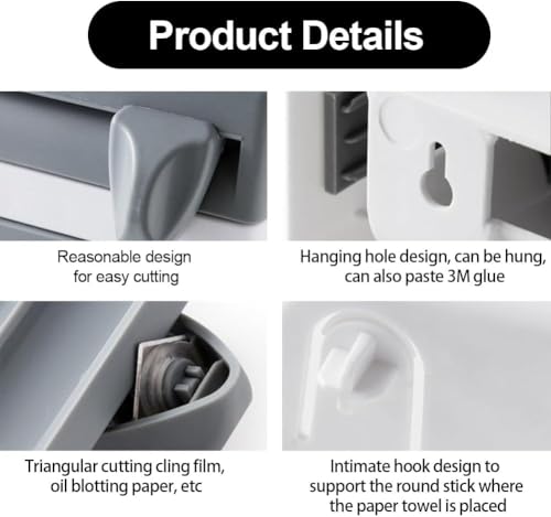 - متوافق مع جميع أحجام بكر الفويل والاسترتش ومناديل المطبخ.
