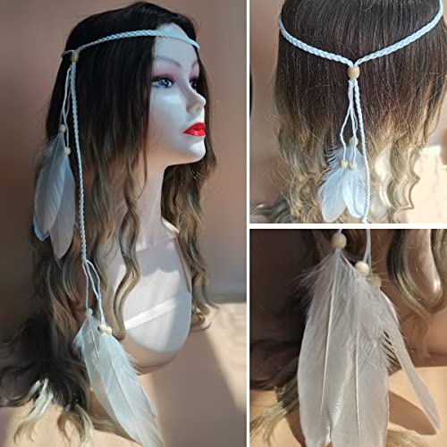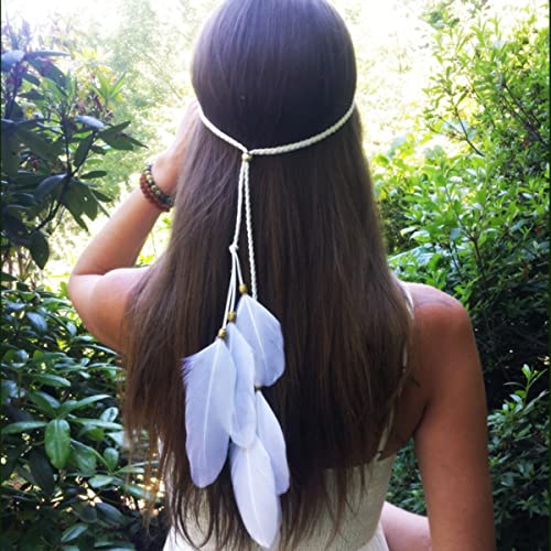 FOLANDO - طوق رأس هندي للنساء من فولاندو، طوق من الريش مع شراشيب ومجوهرات هيبي بوهيمية مستوحاة من العصور الوسطى، اكسسوارات شعر للنساء والبنات للحفلات التنكرية والهالوين، (لون أبيض)