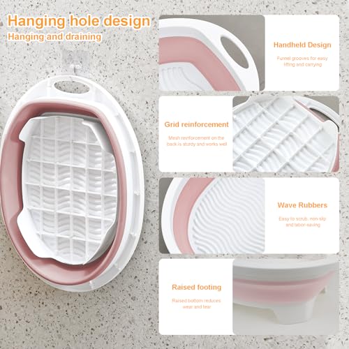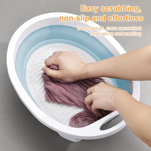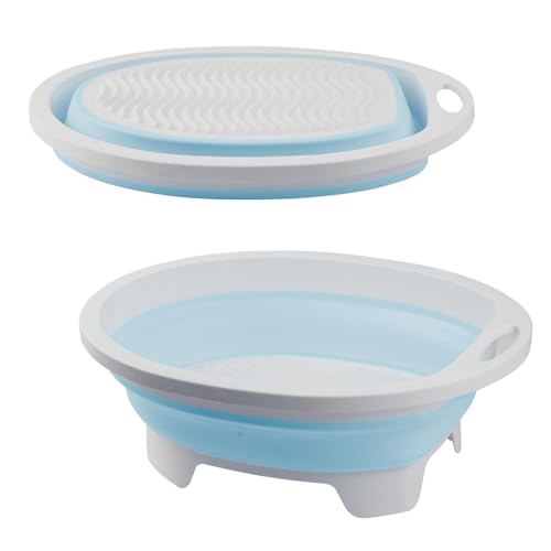 XIEEIX - طبق غسيل ملابس يدوي سهل الحمل وقابل للطي لغسل الملابس، حوض غسيل مع حامل صابون، طبق غسيل وأدوات تنظيف الملابس للمنزل والمدرسة والسكن الجامعي