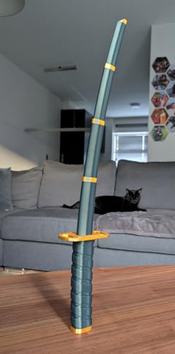 Generic - سيف قابل للطي بطباعة ثلاثية الأبعاد باللونين الفضي والذهبي، بطول 70 سم