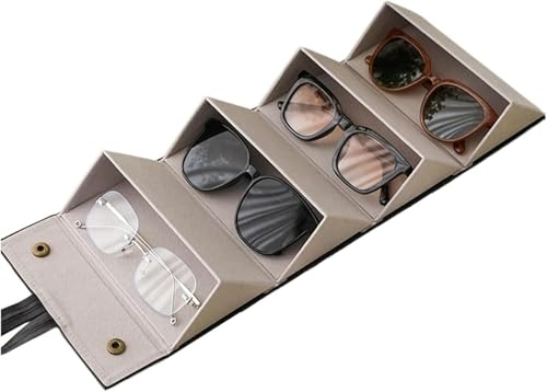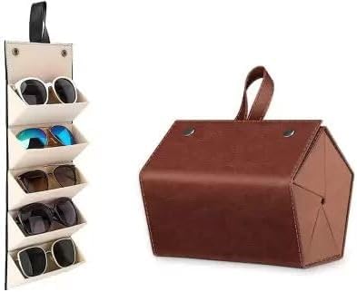 generic - صندوق تخزين نظارات قابل للطي من جلد البولي يوريثين مكون من 5 اقسام - حافظة تنظيم النظارات الشمسية للمنزل او السفر - حامل نظارات لنظارات القراءة والظلال والاكسسوارات