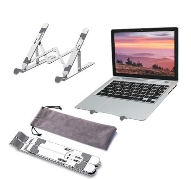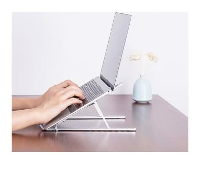 Generic - حامل لاب توب قابل للطي من خليط الألومنيوم مع 7 مستويات لتعديل الارتفاع، باللون الفضي/ الرمادي