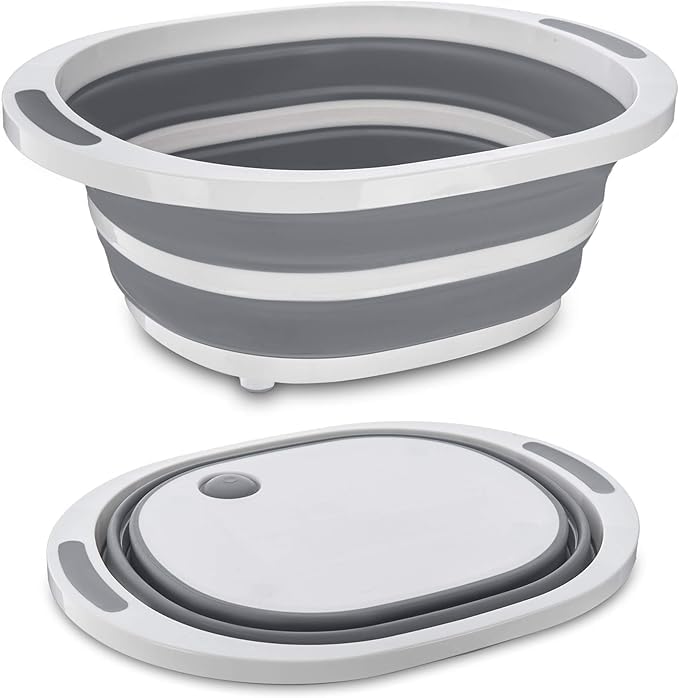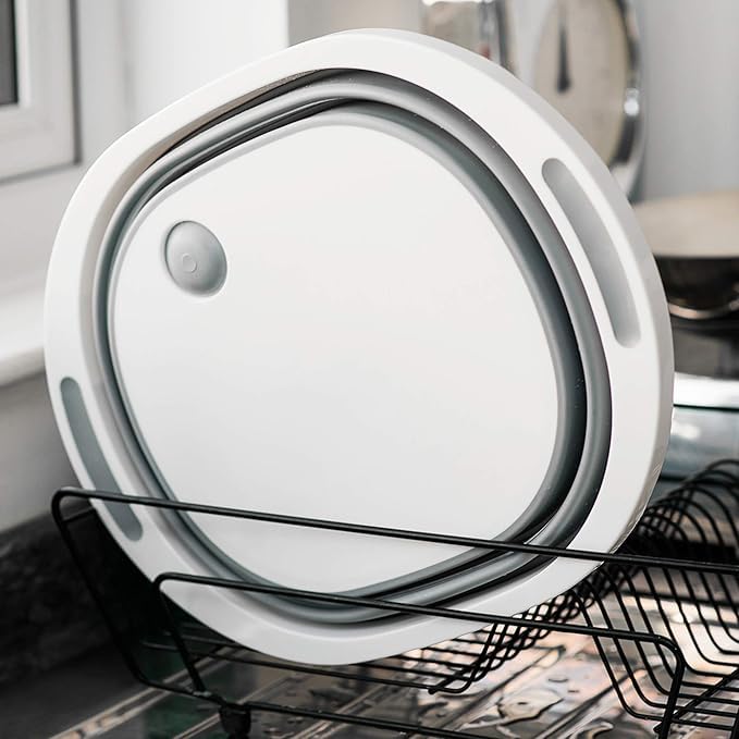 - طبق غسيل ولوح تقطيع قابل للطي من ليفيفو - على الرغم من سعتها المذهلة 7.5 لتر، فإن سلة طبق الغسيل القابلة للطي لا تشغل أية مساحة في الخزانة وأيضًا لها قاعدة قوية للغاية مناسبة لتقطيع الخضروات والفواكه وما إلى ذلك