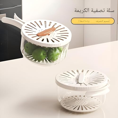 Generic - سلة قابلة للطي - سلة متينة مزودة بغطاء لتصريف الفواكه والخضروات مع مقبض قابل للطي مصمم للتخزين في الثلاجة الصغيرة؛ تتضمن مصفاة خضروات متعددة الاستخدامات ووعاء فاكهة