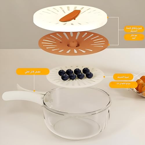 - بالإضافة إلى سلة التصريف، تعمل كمصفاة ثلاجة ويمكن استخدامها كصينية وجبات خفيفة محمولة لسهولة النقل.