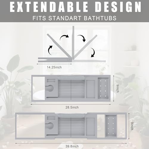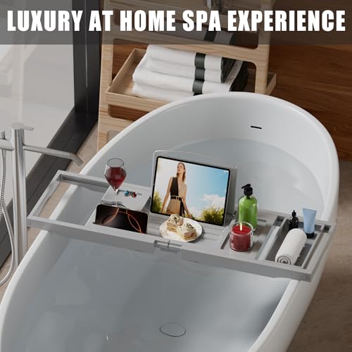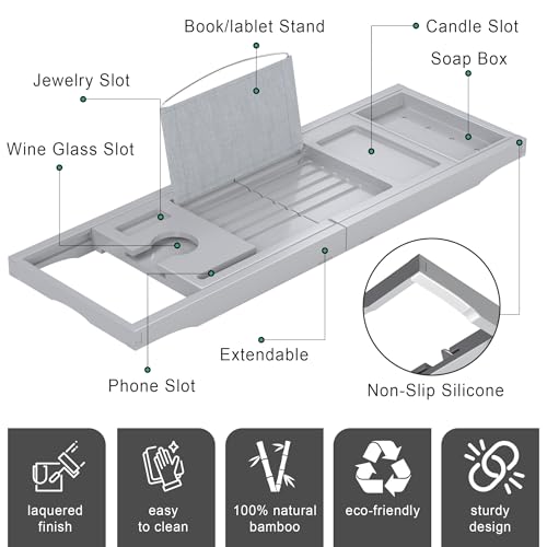 promitop - صينية حوض استحمام قابلة للطي لحوض الاستحمام، صواني طاولة حمام قابلة للتوسيع من الخيزران، اكسسوارات حمام فاخرة للمنزل الجديد وهدايا عيد الام واعياد الميلاد للازواج، رمادي
