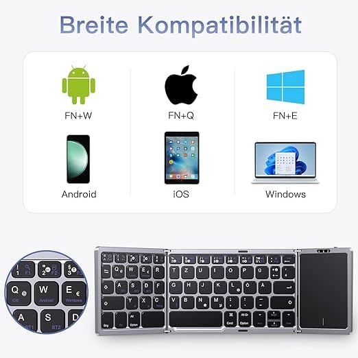 Generic - كيبورد بلوتوث قابل للطي مع لوحة لمس - كيبورد لاسلكية محمولة قابلة لاعادة الشحن ومتعددة الاجهزة لاجهزة ايباد واندرويد وويندوز والكمبيوتر الشخصي