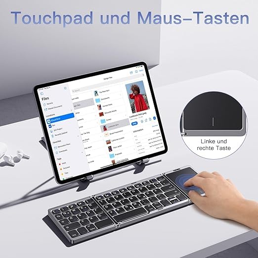 - اقتران بلوتوث بدون مجهود: يتصل بسرعة بجهاز ايباد واندرويد وويندوز وأكثر من ذلك تصميم محمول قابل للطي: خفيف الوزن وموفر للمساحة للسفر أو الاستخدام اليومي، تحكم مدمج بلوحة اللمس: تنقل بسهولة بدون أجهزة إضافية، مفاتيح مريحة: كتابة سلسة للعمل أو الدراسة أو الرسائل قابلة لإعادة الشحن ومتينة: مصممة للاستخدام اليومي دون متاعب البطارية
