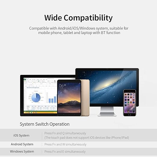 - قابل للطي والحمل: تصميم صغير لسهولة التخزين والسفر لوحة لمس مدمجة: تحكم سلس دون الحاجة إلى ماوس اتصال بلوتوث لاسلكي: اقتران سريع ومستقر بطارية قابلة لإعادة الشحن: شحن USB لراحة الاستخدام اليومي، توافق واسع: يعمل مع أجهزة اندرويد وويندوز