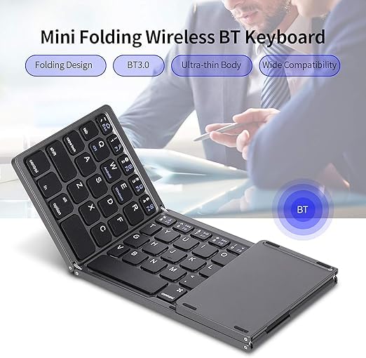 Generic - كيبورد بلوتوث قابلة للطي مع لوحة لمس - تصميم محمول رفيع للغاية - كيبورد قابلة لاعادة الشحن لاجهزة اندرويد وويندوز