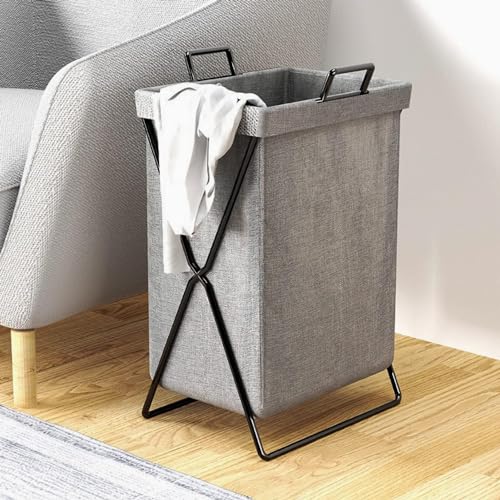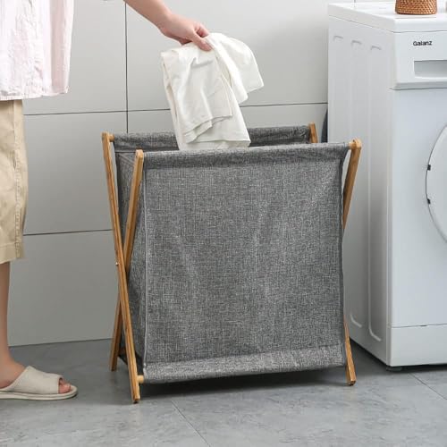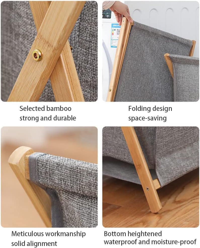 Generic - سلة غسيل قماش قابلة للطي بإطار خشبي – تصميم أنيق لتخزين الملابس أو الألعاب – خفيفة الوزن وسهلة النقل – مناسبة لغرف النوم والحمام – تنظيم الغسيل بستايل عصري