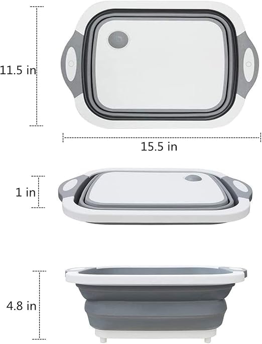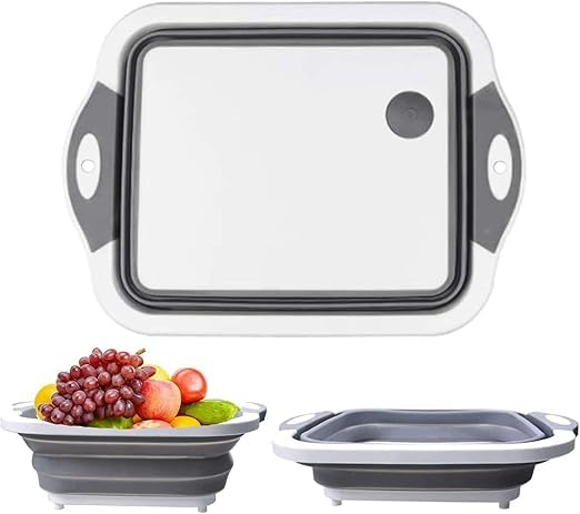 Spaceshoop - لوح تقطيع قابل للطي، لوح تقطيع 3 في 1 متعدد الاستخدامات موفر للمساحة، سلة حاوية للفاكهة والخضروات، سلة غسيل ومصرف للتخييم والنزهات والمطبخ، رمادي وأبيض، كبير جدًا اكس لارج (XL)