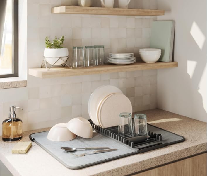Generic - رف تجفيف أطباق قابل للطي ببساط من المايكروفايبر موفر للمساحة وخفيف الوزن وسريع الجفاف لطاولة المطبخ أو الحوض