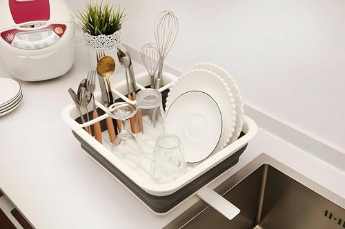 - حافظ على أدواتك منظمة وطاولاتك نظيفة وجافة مع رف الأطباق المبتكر هذا. مصنوع من مادة مرنة فريدة من نوعها، ويمكن طيه لتخزين سهل وفعال. يمكن استخدامه مع حصيرة تجفيف أو لوح تصريف، مما يضمن بقاء أدواتك في مكانها بفضل البطانة الناعمة والأقدام المطاطية التي تمنع الحركة.