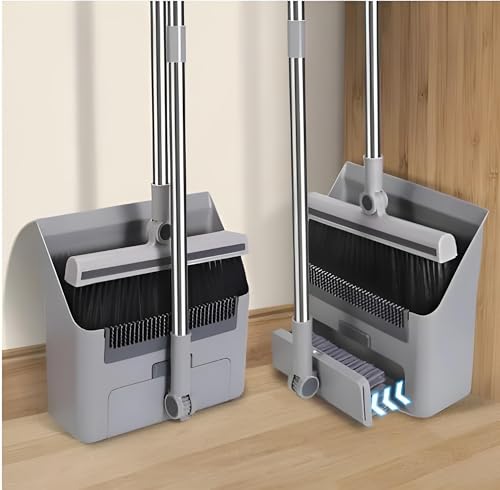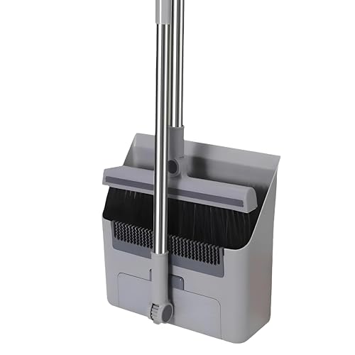 Generic - وعاء غبار قابل للطي - طقم تنظيف رمادي مع رأس مكنسة دوار ومقبض طويل قابل للتعديل مثالي لاحتياجات الكنس المتنوعة في الداخل والخارج في كل مكان