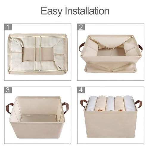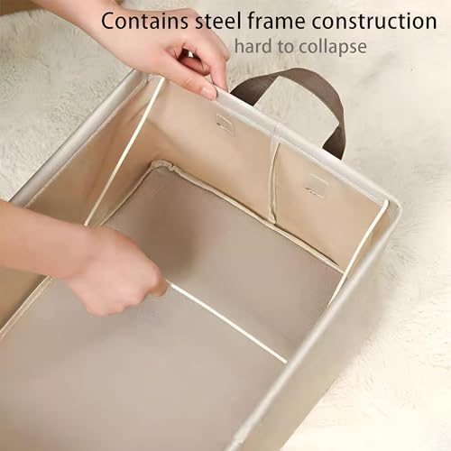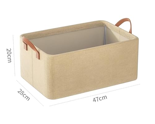 Generic - منظمات قماشية قابلة للطي - صناديق تخزين بيج مع اطار معدني، 47 × 27 × 20 سم، مثالية للتخزين على الرفوف والخزانة، سهلة التجميع والتخزين (3 قطع)