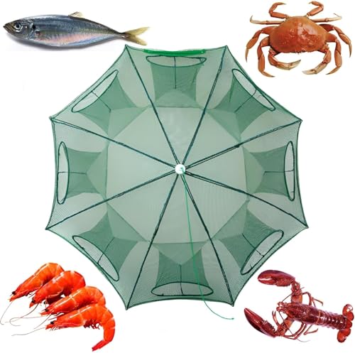 Generic - شبكة صيد قابلة للطي، تصميم مظلة من 8 جوانب، شبكة خضراء لصيد السمك والروبيان وسرطان البحر