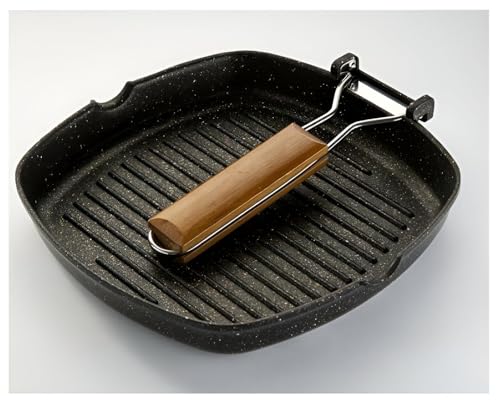 Generic - شواية قابلة للطي - طاسة شواء غير لاصقة بسعة كبيرة لشرائح اللحم والأسماك، مثالية للطهي في الهواء الطلق، سهلة الحمل والتخزين بمقبض خشبي (مقاس 20)