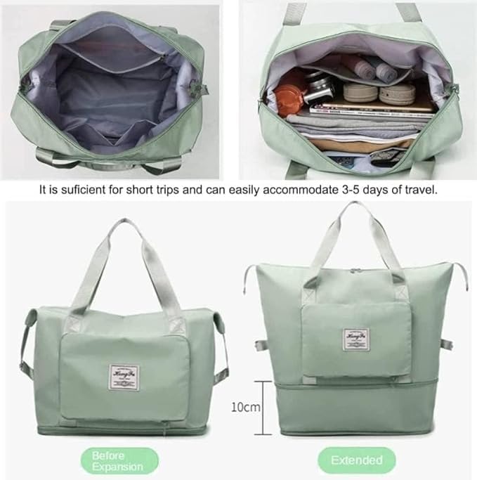 - ✅ تصميم ذكي قابل للطي والتوسعة: واحدة من أكبر المميزات هي سهولة طي الشنطة وتخزينها عندما لا تكون قيد الاستخدام. وعندما تحتاجين إلى مساحة أكبر، ببساطة افتحي السحاب السفلي وستحصلين على حجم أكبر فورًا
