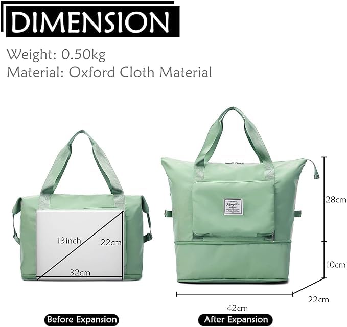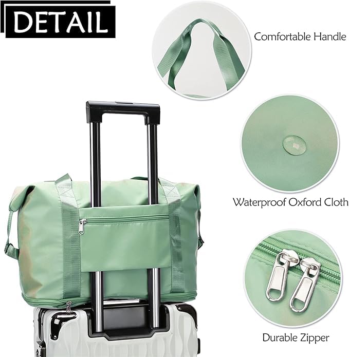 Generic - شنطة السفر الجامبو القابلة للطي – مقاومة للماء بخامة نايلون وأوكسفورد قوية، بسعة كبيرة وتصميم قابل للتوسعة، مثالية للسفر، الجيم، المناسبات، مستلزمات الأطفال وأكثر (اخضر فاتح)