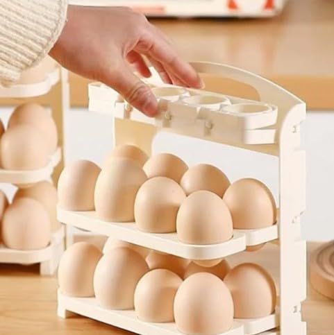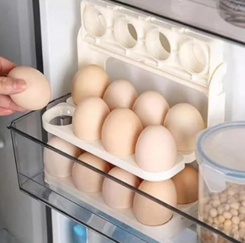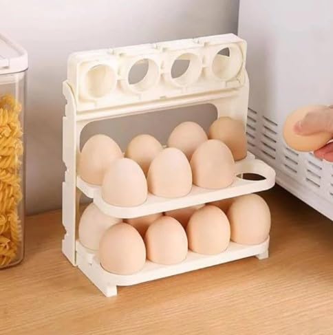 Generic - منظم تخزين البيض القابل للطي للمطبخ، يتسع لـ 24 بيضة، تصميم قابل للتكديس، لون أبيض، رف تخزين للثلاجة.