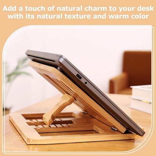 VOLIVX - حامل لاب توب قابل للطي، حامل رفع محمول قابل للتعديل، حامل كمبيوتر جيد التهوية لسطح المكتب يحمل كتب الطبخ والكتب المدرسية والتابلت واللابتوب والكتب الموسيقية والمستندات