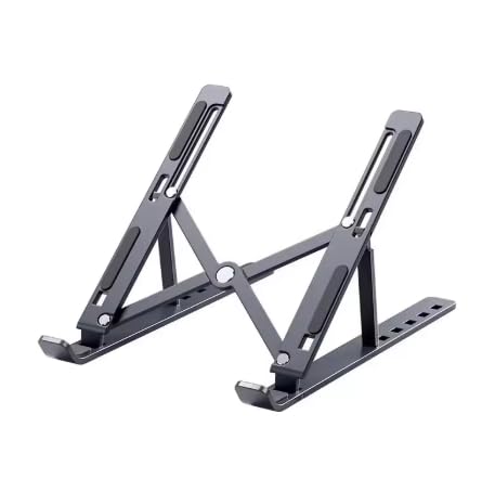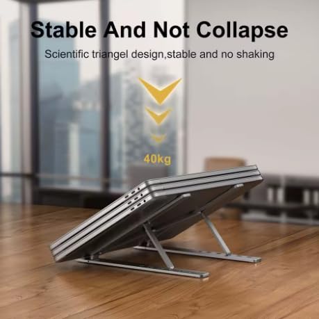 Generic - حامل لابتوب قابل للطي، ألومنيوم، تصميم مثلث مستقر، مضاد للانزلاق، يتحمل 40 كجم، رمادي