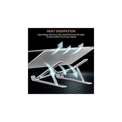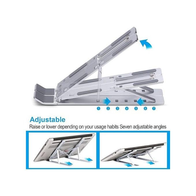 Generic - حامل كمبيوتر محمول قابل للطي، خفيف الوزن وجيد التهوية لحمل الكمبيوتر المحمول وللتابلت سهل الحمل ومناسب للسفرمن المعدن (فضى)