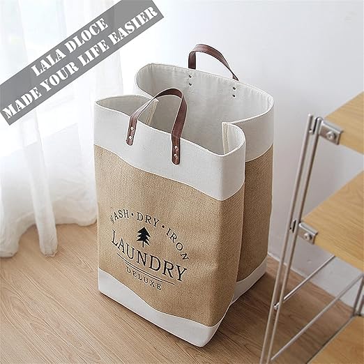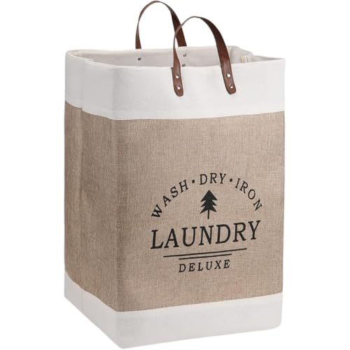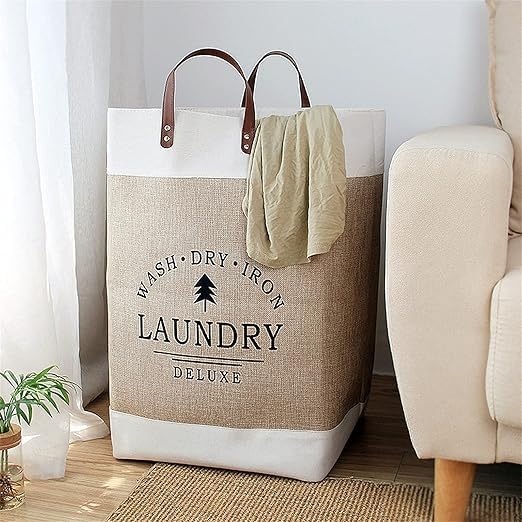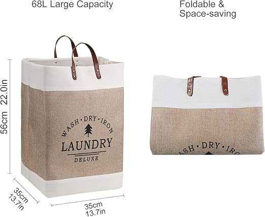 Generic - شنطة تخزين قابلة للطي، سبت غسيل بمقابض من الجلد الصناعي، مقاس 34.80 سم × 55.88 سم، مبطنة بالقطن لتنظيم الألعاب والملابس