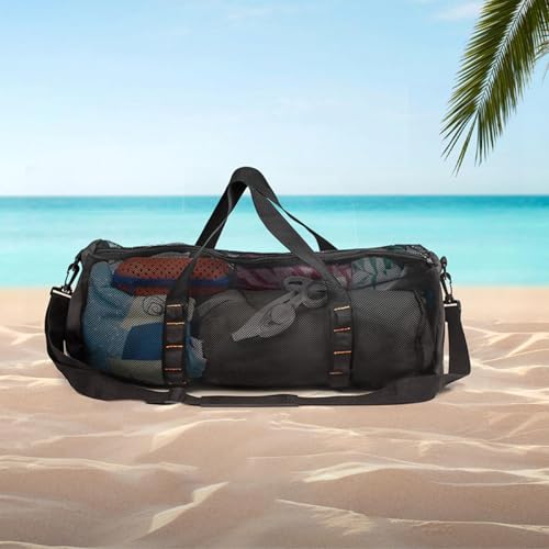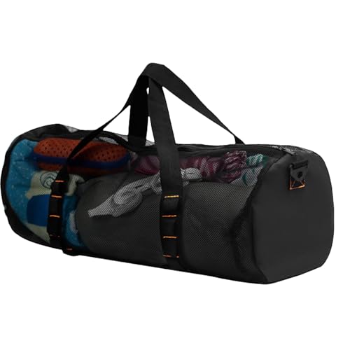 SWIUKPHE - شنطة دفل شبكية قابلة للطي، معدات اسطوانية كبيرة للغوص والغطس والسباحة، كرة شبكية شديدة التحمل للياقة البدنية مع احزمة للتدريب في صالة الالعاب الرياضية