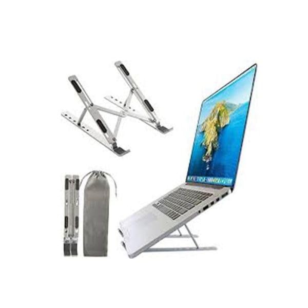 - **قابل للطي وتعديل الارتفاع**: يمكن تعديل هذا الحامل للاب توب بسهولة ليناسب ارتفاعك وزاوية الرؤية المريحة.