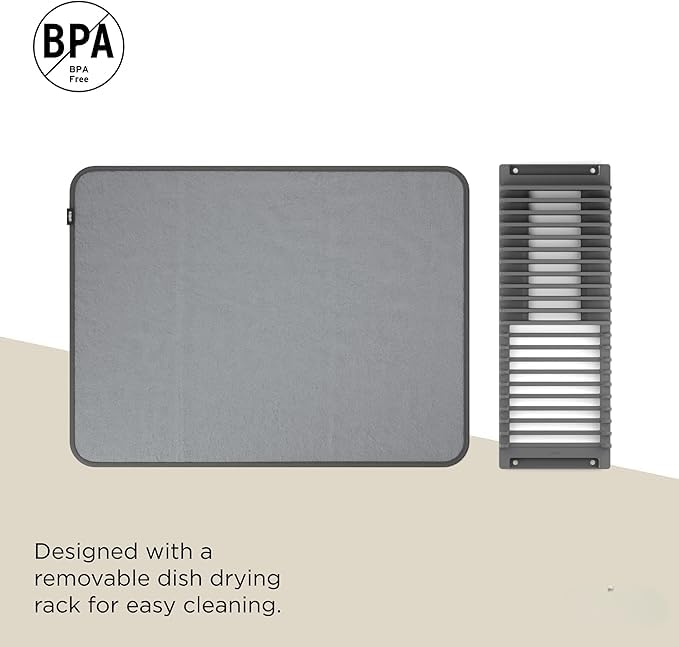 - تصميم عملي ومتعدد الاستخدامات: بساط تجفيف الأطباق من المايكروفايبر مع رف تجفيف قابل للإزالة يوفر حلاً مثالياً لتنظيم وتجفيف الأطباق والأواني في المطبخ