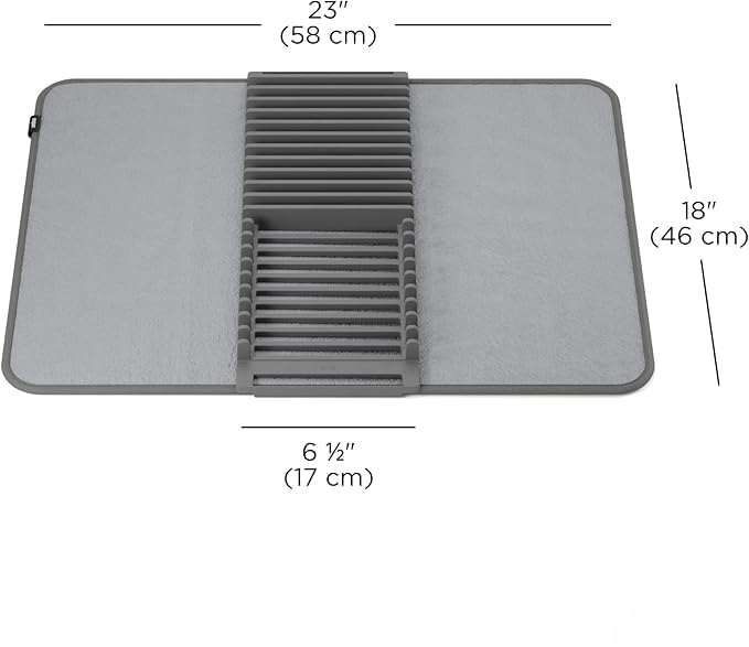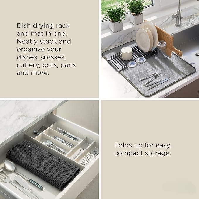 Generic - بساط تجفيف الأطباق من المايكروفايبر قابل للطي مع رف تجفيف قابل للإزالة، ماص للماء لطاولة المطبخ، بساط أطباق للمطبخ 60×42 سم، رمادي