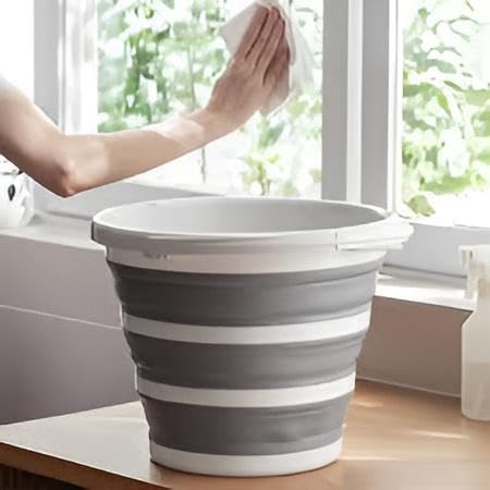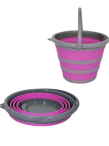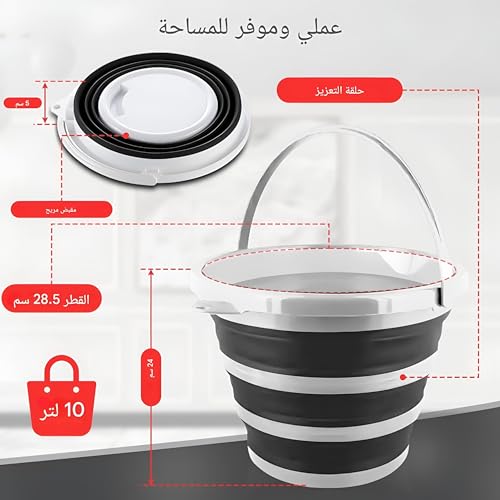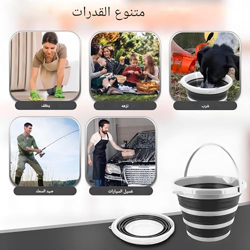 Generic - دلو خارجي قابل للطي - حاوية مياه سيليكون سعة 10 لتر مع مقبض متين للتخييم والنزهات وغسيل السيارات ورحلات الصيد متعددة الالوان (قطعة 2)
