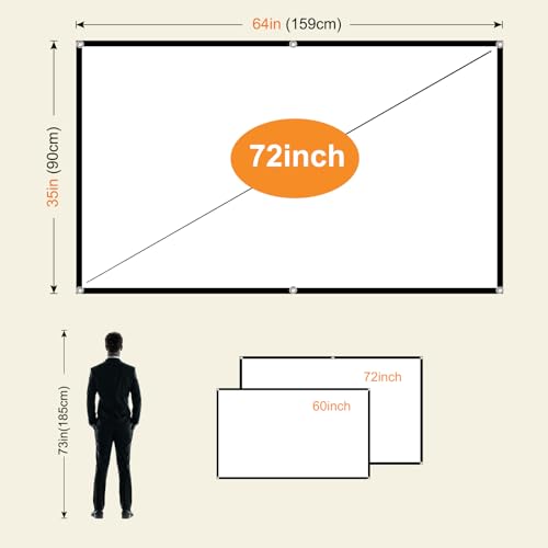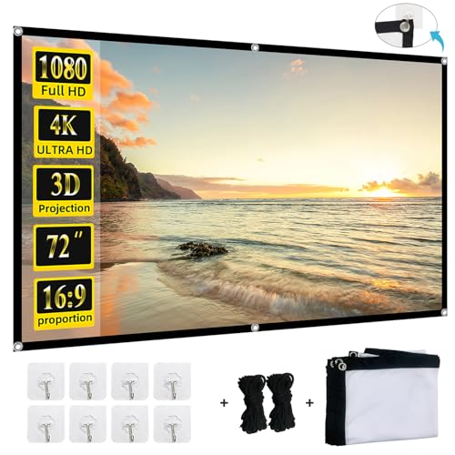 XINLEMY - شاشة عرض قابلة للطي من شينليمي مقاس 72 بوصة بدقة 4 كيه 16:9 HD محمولة ومضادة للتجعد، شاشة سينما مزدوجة الجوانب للمسرح المنزلي والفناء الخلفي للاستخدام الداخلي والخارجي.