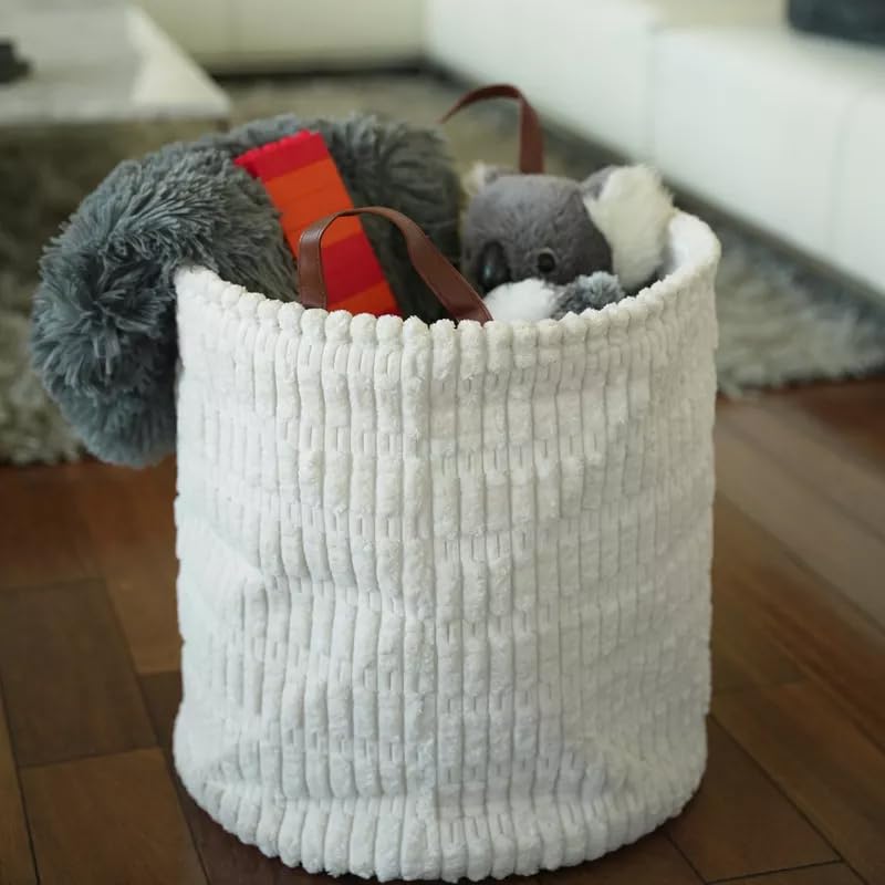 Generic - سلة غسيل مخملية مضلعة قابلة للطي بمقبض من الجلد - مقاس 40 × 35 سم