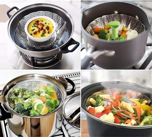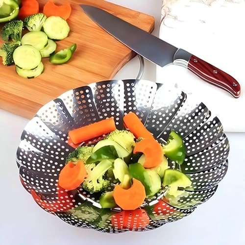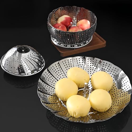 - مصنوعة من الفولاذ المقاوم للصدأ عالي الجودة، تم تصميم سلة الطهي بالبخار لتحمل متطلبات الطهي اليومية. تبلغ أبعاد السلة عند طيّها حوالي 14.2 سم في القطر و3 سم في الارتفاع، بينما يتوسع القطر عند الفتح ليصل إلى حوالي 21 سم، مع ارتفاع يقارب 5 سم. يضمن هذا التصميم المدمج والواسع في الوقت نفسه أنه يمكنه استيعاب مجموعة متنوعة من الأطعمة.