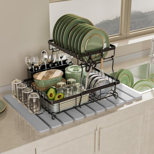 Oasisgalore - دواسة حمام حجرية قابلة للطي سريعة الجفاف فائقة الامتصاص لطاولة المطبخ دياتومي سوتيرا، رمادي